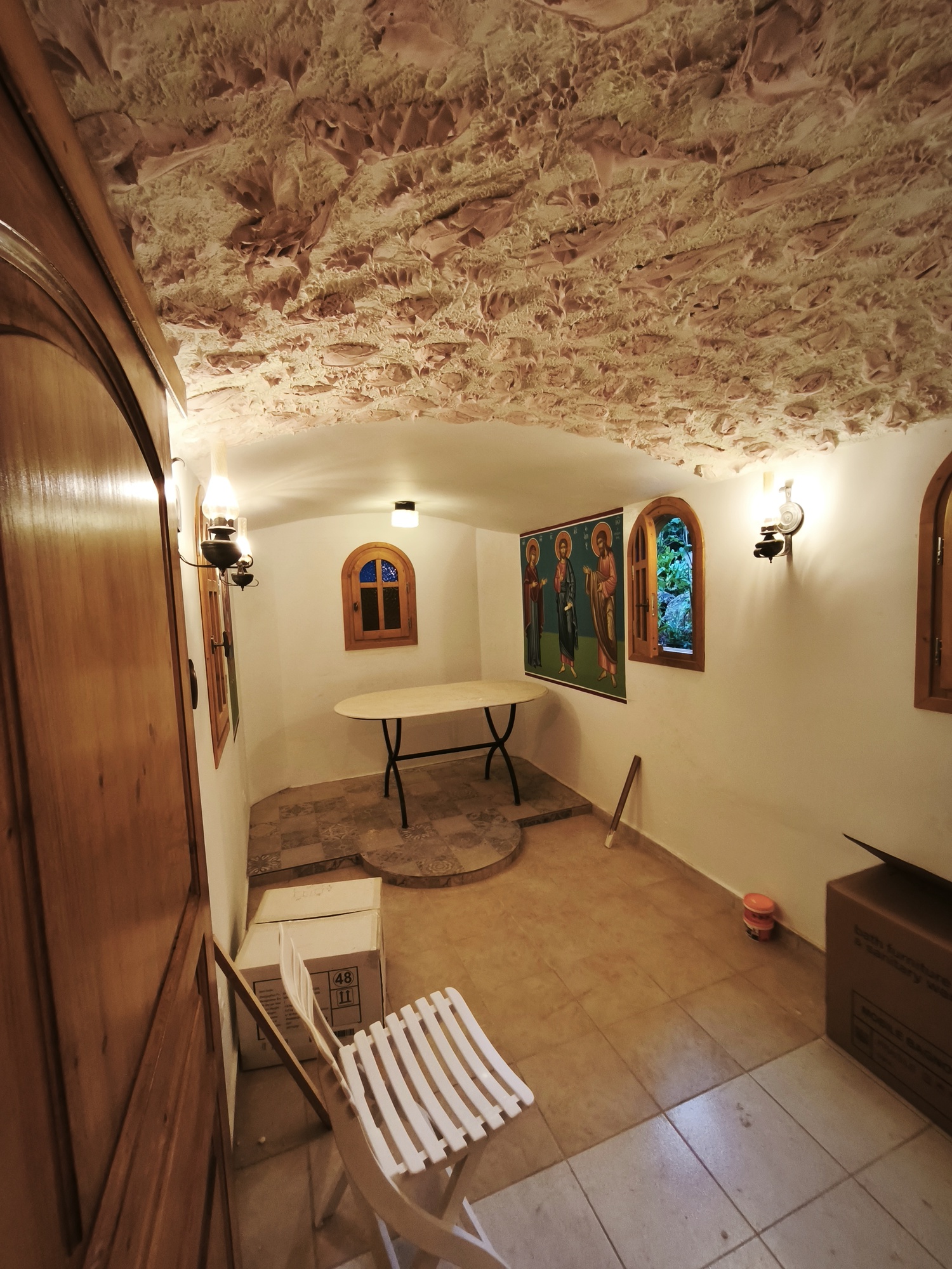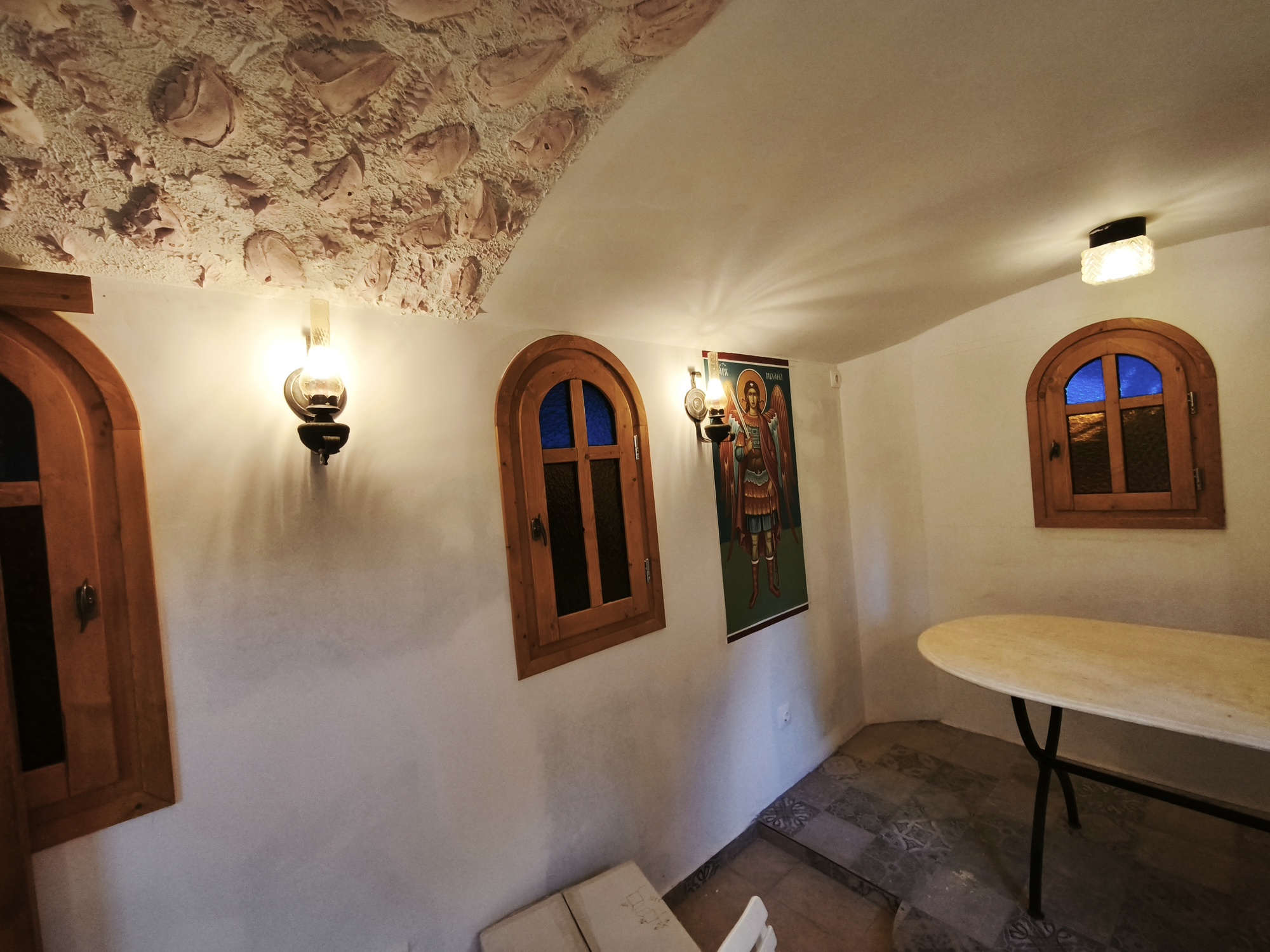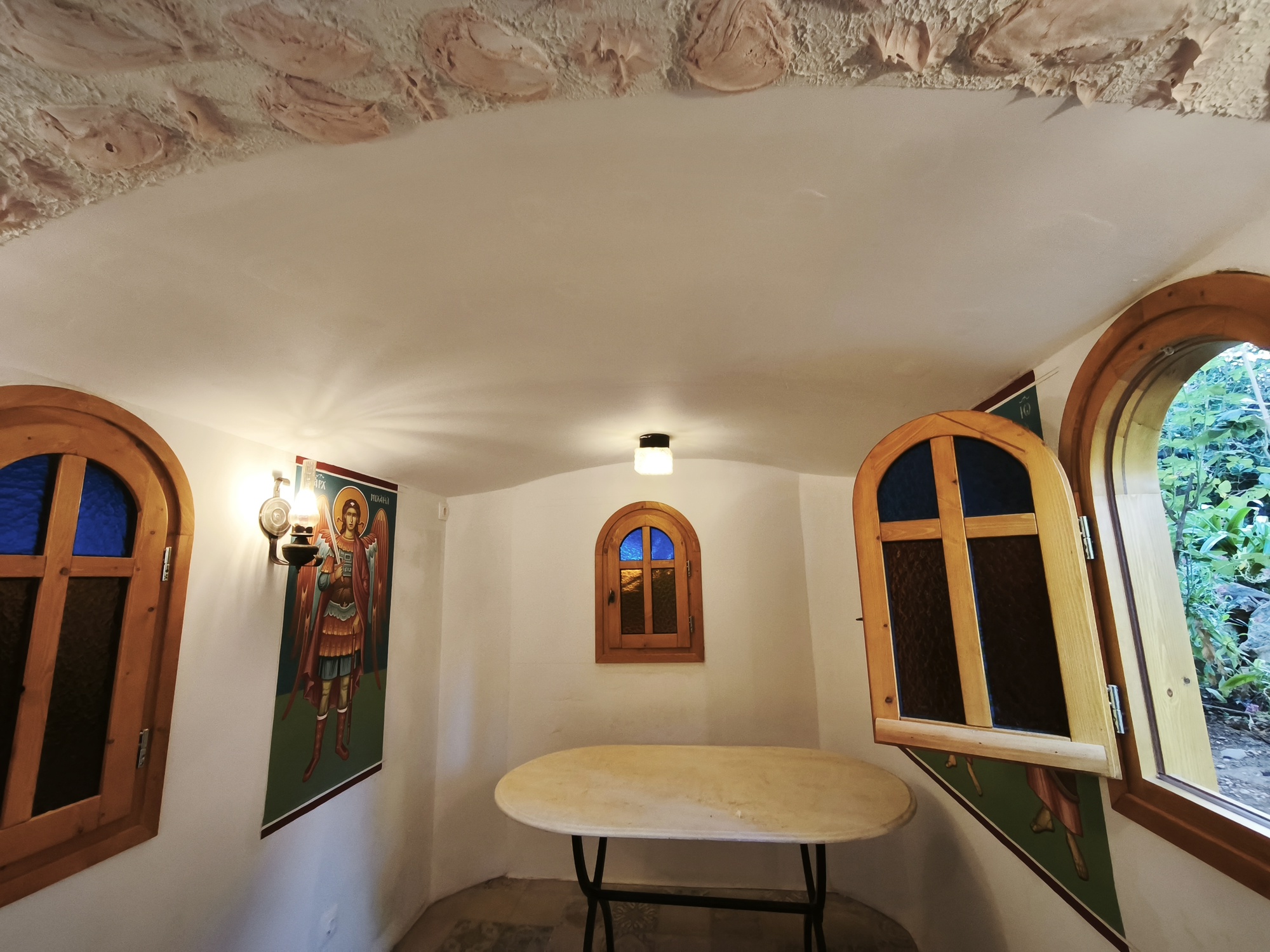 Δημιουργήθηκε εκκλησάκι σε κήπο κατοικίας στη Κηφισιά. Πραγματοποιήθηκε πλήρης διαμόρφωση του χώρου με χωρίσματα από γυψοσανίδα εσωτερικα και ινοσανίδα εξωτερικά, διαμορφώθηκαν ανοίγματα για πόρτα και παράθυρα, ενώ κατασκευάστηκε και κυρτή ψευδοροφή από γυψοσανίδα, προσδίδοντας στο χώρο καλαίσθητο και αρμονικό αποτέλεσμα.