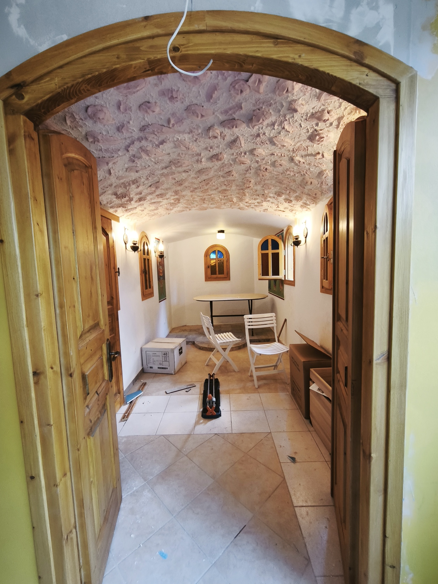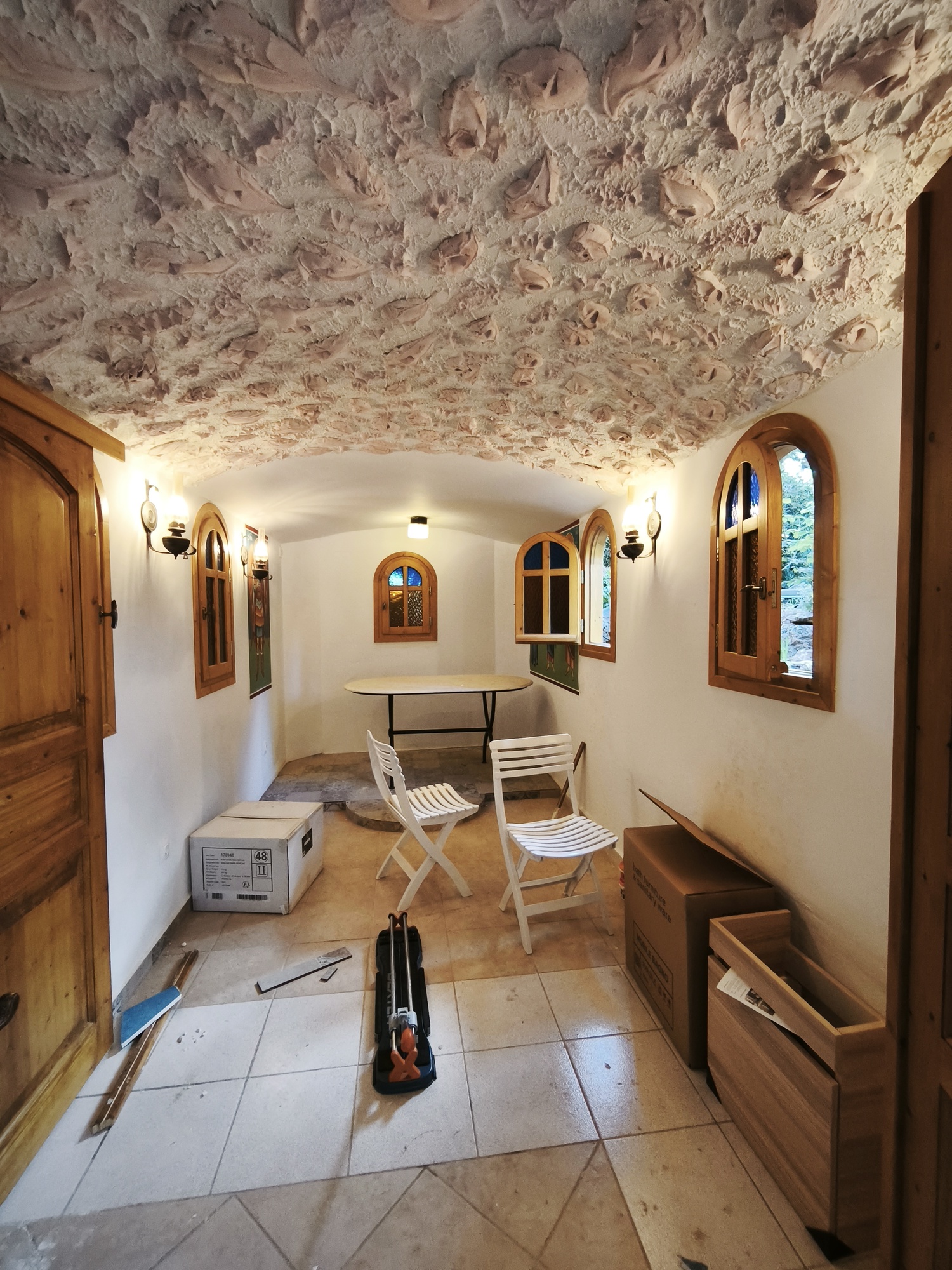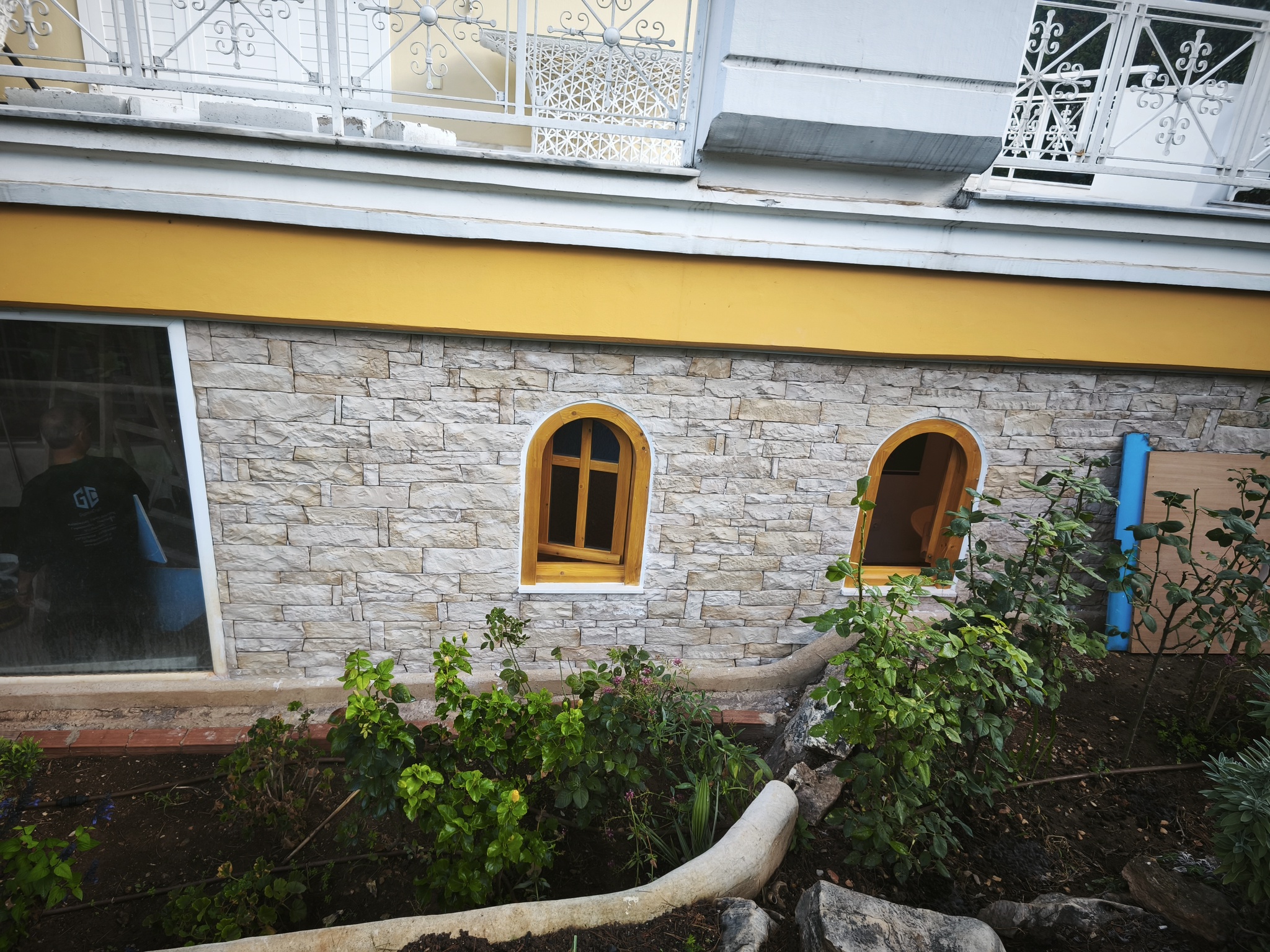 Δημιουργήθηκε εκκλησάκι σε κήπο κατοικίας στη Κηφισιά. Πραγματοποιήθηκε πλήρης διαμόρφωση του χώρου με χωρίσματα από γυψοσανίδα εσωτερικα και ινοσανίδα εξωτερικά, διαμορφώθηκαν ανοίγματα για πόρτα και παράθυρα, ενώ κατασκευάστηκε και κυρτή ψευδοροφή από γυψοσανίδα, προσδίδοντας στο χώρο καλαίσθητο και αρμονικό αποτέλεσμα.